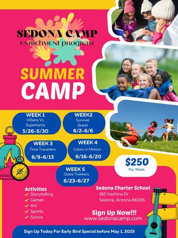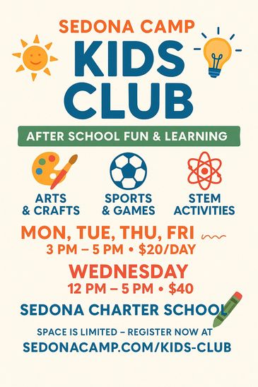"Sedona Camp was founded with a clear mission: to provide Sedona and the Verde Valley with high-quality after-school programs that fill a crucial gap in our community's educational landscape. Our commitment to excellence shines through in every aspect of our programs, from the engaging activities we offer to the safe and supportive environment we cultivate. Through a diverse range of activities such as fun games, creative arts and crafts, sports, and team-building exercises, we aim to nurture each child's unique development journey. Our approach is holistic, focusing not just on academic skills but also on social, emotional, and physical growth. At Sedona Camp, we believe that every child deserves a chance to thrive outside of the traditional classroom setting. That's why we go beyond mere supervision and homework help; we create meaningful learning experiences that inspire curiosity, foster creativity, and instill a love for lifelong learning. Our dedicated team of educators and mentors is committed to providing a safe and enriching environment where children can explore their interests, build friendships, and develop essential life skills. We understand the importance of a well-rounded education, and our programs are designed to complement and enhance your child's learning journey. Join us at Sedona Camp and discover the difference a high-quality after-school program can make in your child's life. Together, we'll create a vibrant community where every child has the opportunity to thrive and succeed."